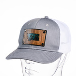 Introducing our one-of-a-kind trucker hat, handmade with the finest materials and craftsmanship. The centerpiece of this hat is a patch made of walnut veneer, laser cut into the shape of Montana and laminated onto a piece of artisanal patinated copper veneer. Due to the natural materials used, each patch is unique and may exhibit variations in color and pattern.