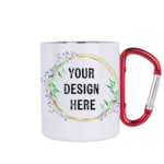 300ml Stainless Steel Mug w/ Red Carabiner Handle White